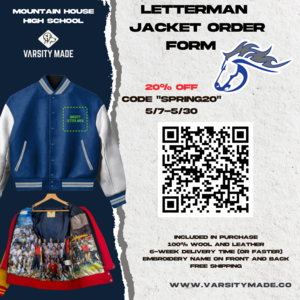 Order your MHHS Letterman Jacket today and use discount code: "SPRING20" to receive 20% off. thru 5/30. Q's contact: [email protected]