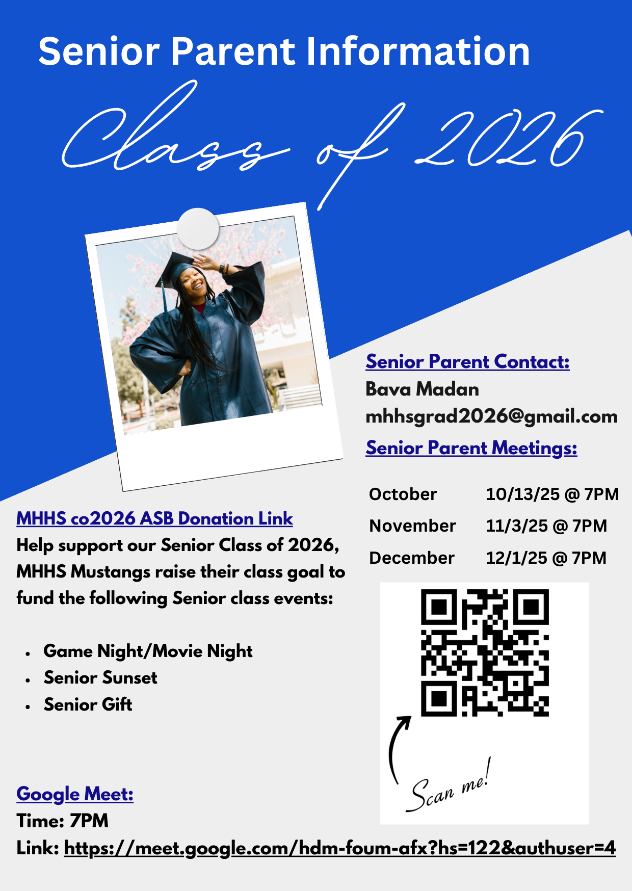 Join the Senior Parent Committee and be part of the excitement as we count down to Graduation Day! Monthly Google-meets. Stay in the know about events & fundraisers. Get involved and make memories with our seniors!