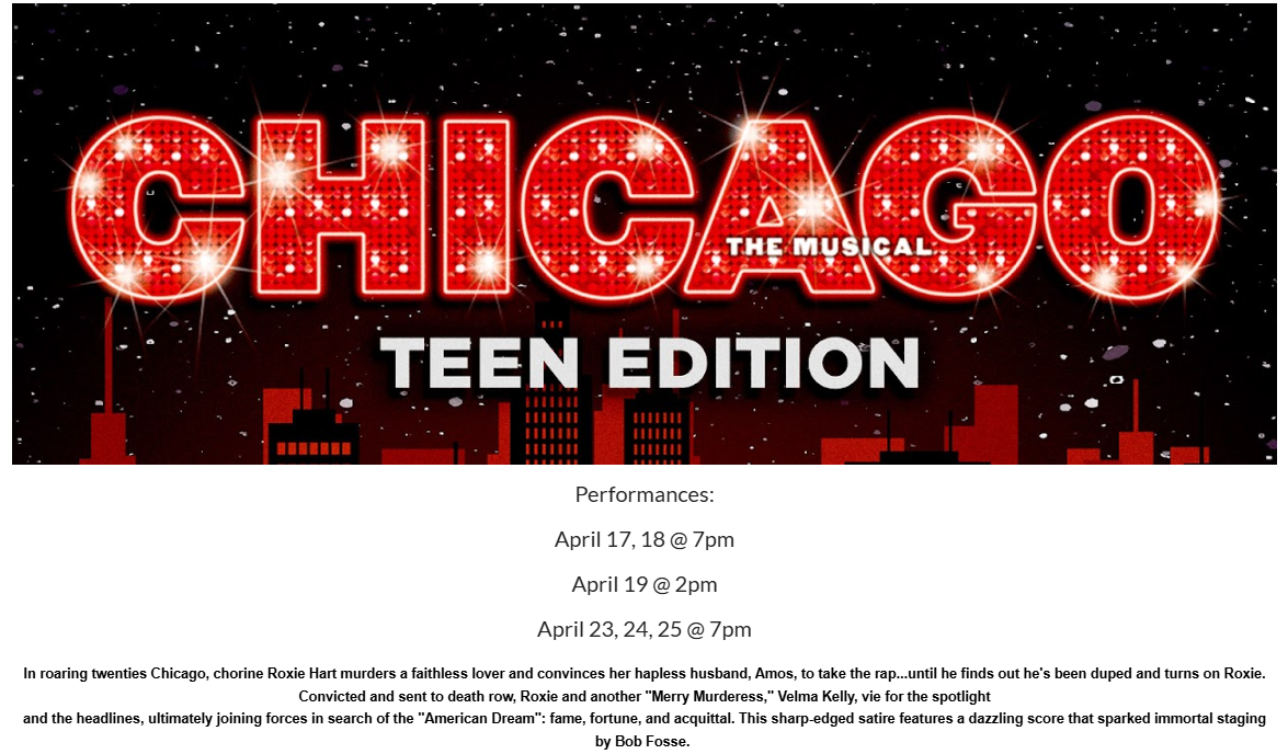 Mountain House High School presents Chicago: Teen Edition! Experience slick dance moves, powerhouse vocals, and scandalous drama. —don't miss out!"