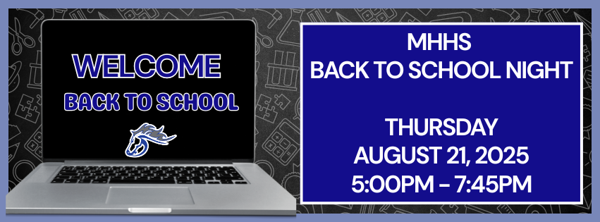 We’re excited to welcome you to Back to School Night on Thursday, August 21st, 2025. This is a great opportunity to meet your student’s teachers, learn more about their classes, and connect with our school community. After you’ve visited your student’s classes, please join our administrative team in the MHHS Theater for a short Presentation and Parent Q&A Session. We want to make this time meaningful, so we’re inviting you to share your questions in advance.